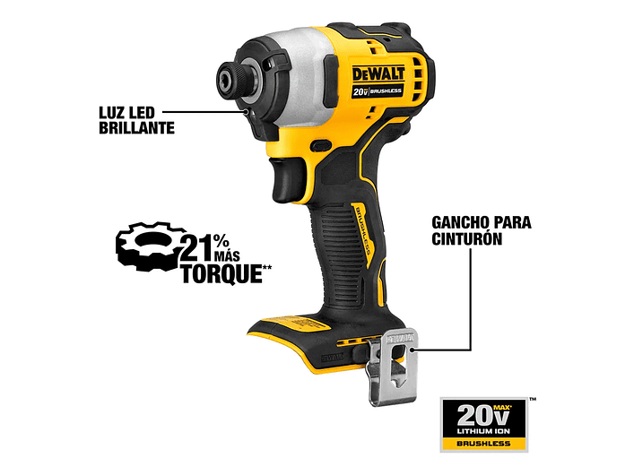 El Dewalt DCF809B es uno de los atornilladores de impacto más compactos de la línea 20V MAX. Diseñado para trabajar en espacios reducidos sin sacrificar potencia, ofrece un rendimiento profesional gracias a su motor sin escobillas, velocidad variable y luz LED integrada.