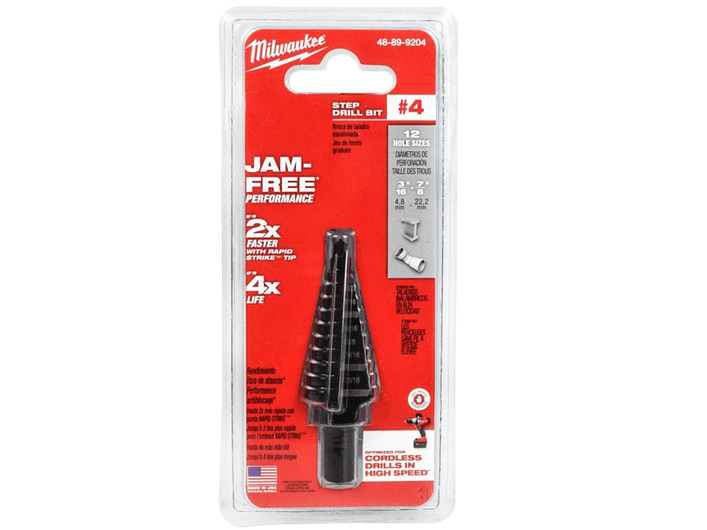 Milwaukee 48-89-9204 – Broca Escalonada de Alto Rendimiento con Punta Rapid Strike™, Vástago Secure-Grip™ y Recubrimiento de Óxido Negro