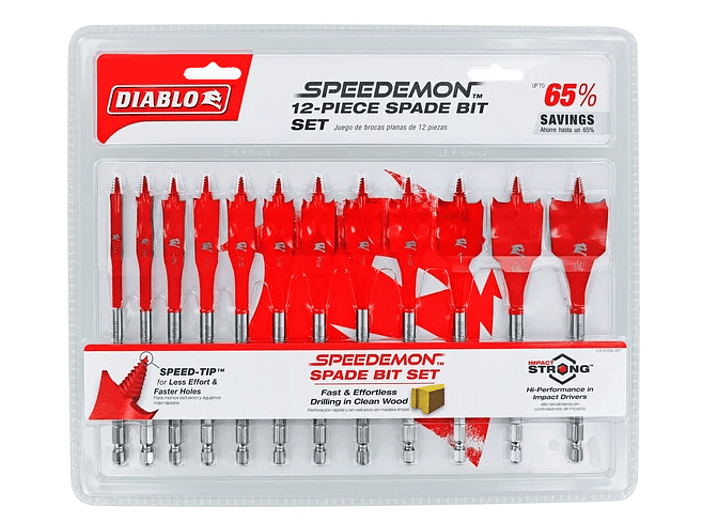 brocas Diablo DSP2950-S12 – SPEEDemon™ paleta – Diablo Chile – brocas madera limpia – brocas punta SPEED-TIP™ – brocas RED HELIX™ – brocas Impact Strong™ – brocas hexagonales 1/4 – set 12 unidades Diablo – brocas perforación rápida