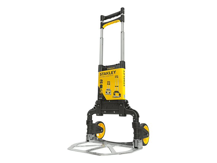 Stanley SXWTD-FT500, carro plegable de aluminio con capacidad de 60 kg, mango ajustable TPR, ruedas de goma silenciosas y base reforzada, solución portátil y resistente para transporte de carga en obra, oficina y viajes, Stanley Chile.