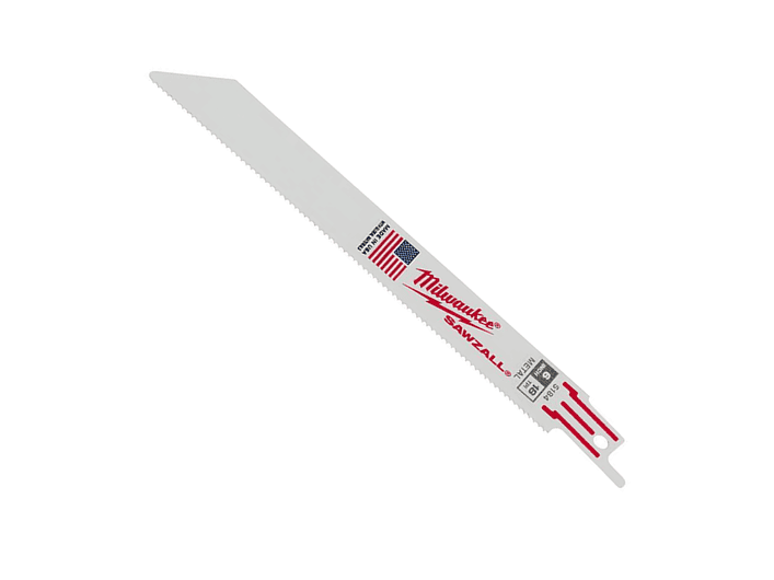 Milwaukee 48-00-5184, set de hojas SAWZALL® de 6" y 18 TPI con tecnología Tough Neck™, GRID IRON™ y espiga universal, solución precisa y resistente para corte en metal y demolición profesional, Milwaukee Chile.