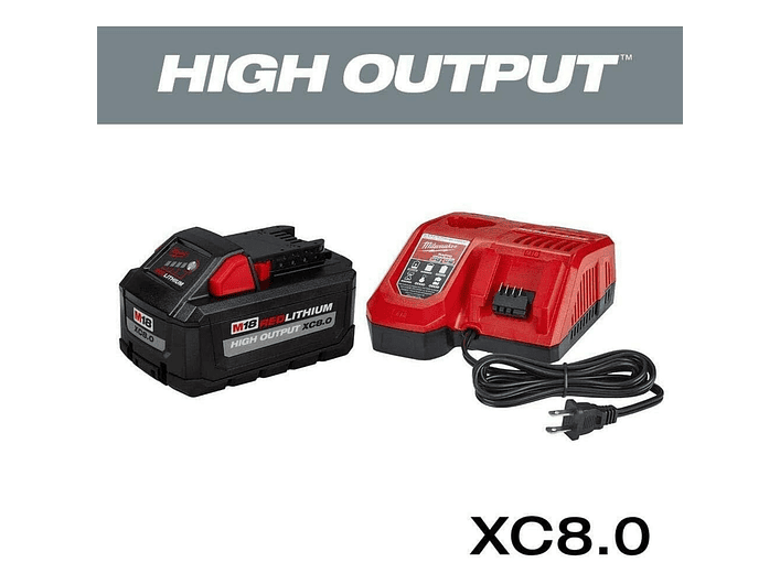 Kit Milwaukee 48-59-1880, batería XC8.0 M18, cargador rápido Milwaukee, batería REDLITHIUM HIGH OUTPUT, herramientas inalámbricas Milwaukee, Milwaukee Chile.