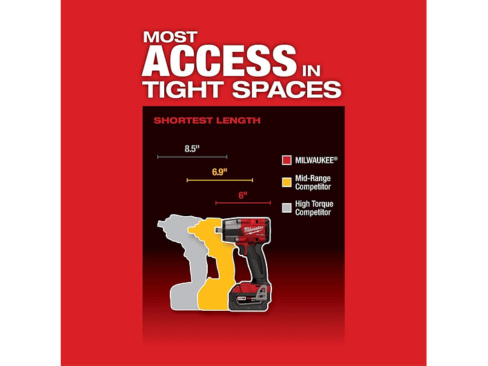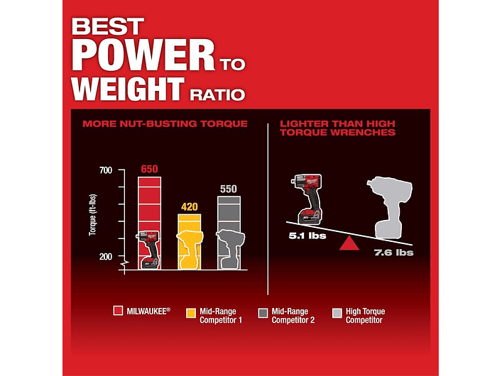 Milwaukee 2962P-20 – Llave de Impacto Inalámbrica M18 FUEL™ de 1/2" con Retén de Pasador, Motor Brushless POWERSTATE™, Torque de 880 Nm para Afloje, 4 Modos DRIVE CONTROL™, Iluminación Tri-LED y Tecnología REDLINK PLUS™ para Fijación Profesional en Espacios Reducidos