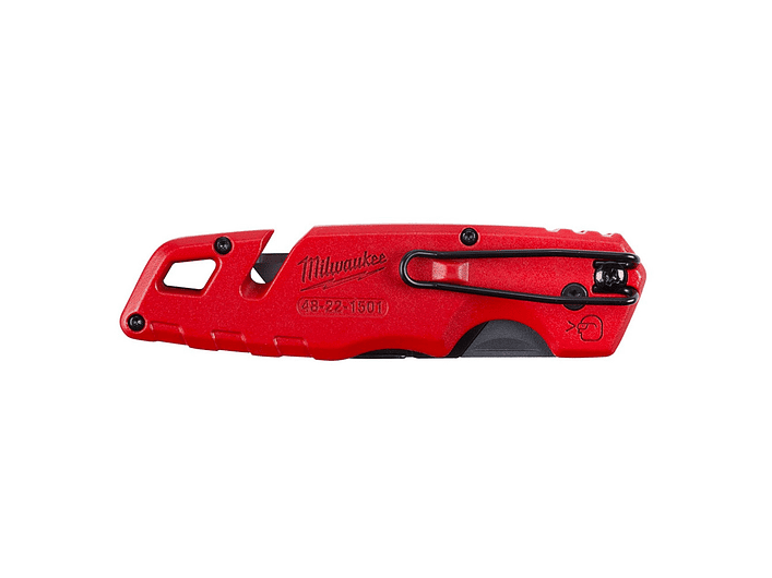 Milwaukee 48-22-1501 – Cuchillo Cartonero Plegable FASTBACK™ con Apertura Rápida, Cambio de Hoja sin Herramientas, Cuerpo Metálico, Pelacables Integrado y Clip de Cinturón para Corte Profesional en Obra y Taller