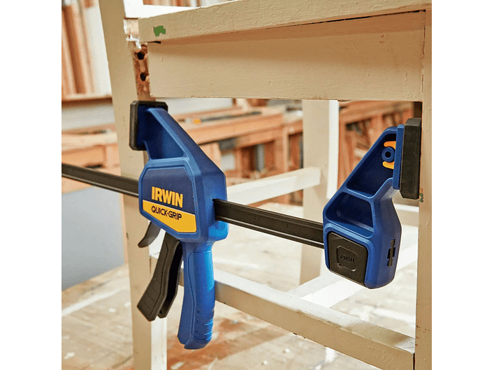 Diseñada para ofrecer sujeción firme, operación con una sola mano y máxima comodidad, esta prensa Irwin es ideal para carpintería, ensamblaje, bricolaje y trabajos de precisión. Su diseño ergonómico y su sistema QUICK-GRIP™ permiten aplicar hasta 63 kg de fuerza de manera uniforme y controlada.