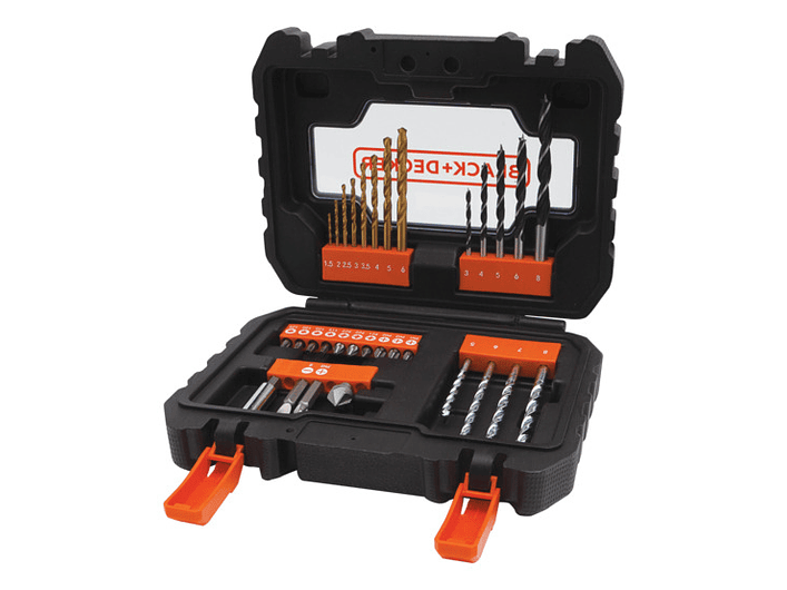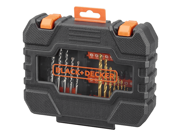 El set A7232-XJ de Black+Decker es una solución versátil y completa para tareas de perforación y atornillado en múltiples materiales. Incluye brocas para metal, madera y mampostería, además de puntas y accesorios esenciales, todo organizado en un práctico estuche compacto y resistente.