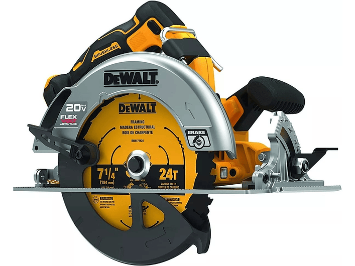 Dewalt DCS573B – Sierra Circular Inalámbrica 7-1/4" 60 V / 20 V MAX FLEXVOLT® con Motor Brushless, Freno Electrónico, LED Integrado y Profundidad de Corte de 2-9/16" para Cortes Rápidos y Precisos en Obra